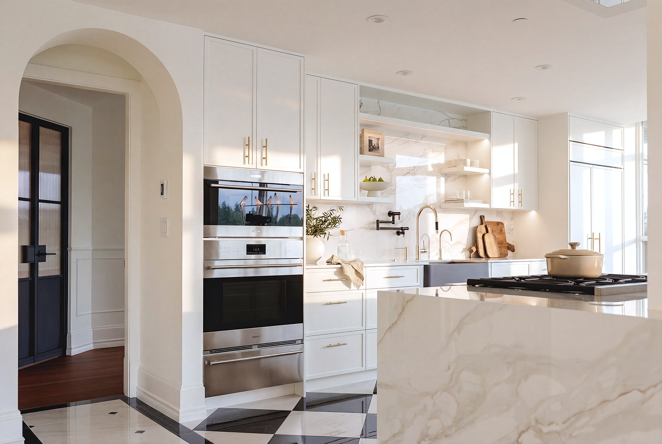 The layout was reconfigured to improve flow, natural light, and usability, anchored by an open-concept kitchen, custom millwork, and spa-inspired bathrooms. A soft, modern material palette and integrated lighting create a cohesive and timeless aesthetic throughout.